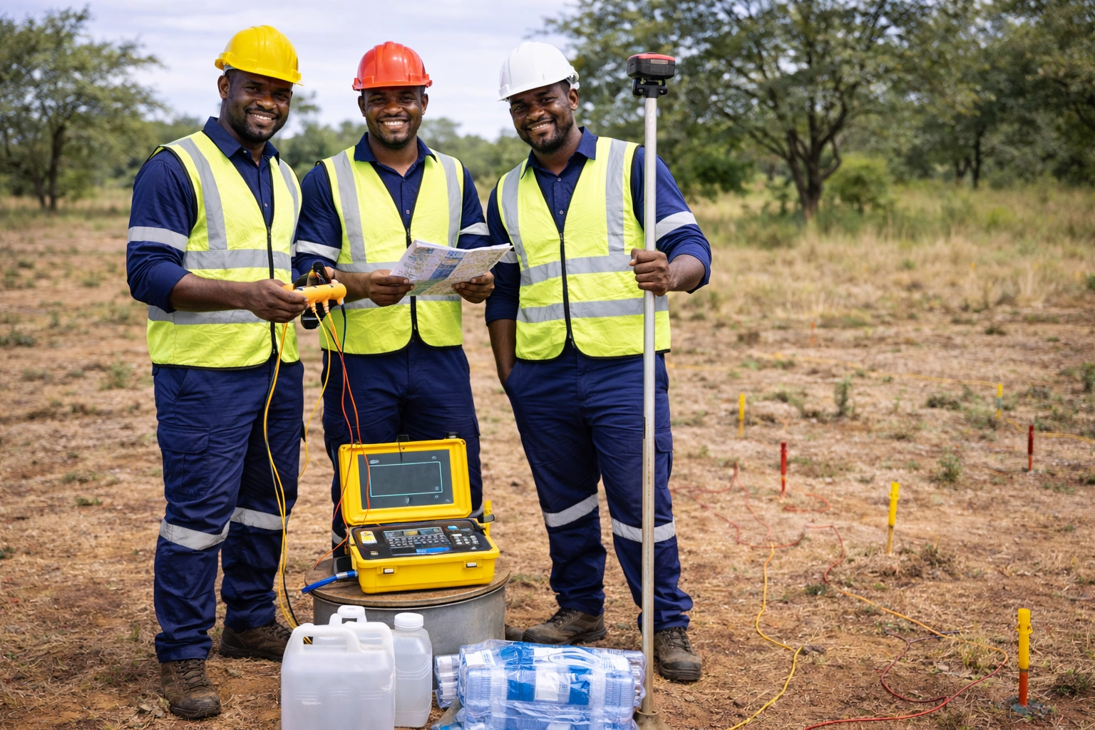 Before drilling, we conduct detailed hydrogeophysical surveys to identify the most viable drilling points.
